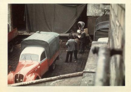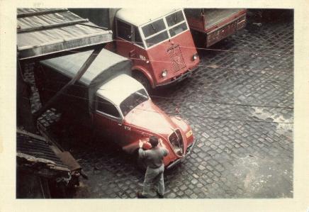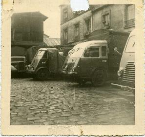 7- Roland collaborateur de longue date guide ici une 202 UH de 1949 à se glisser dans un espace réduit. A côté un Renault AHN. Ce type de camionnettes était utilisé pour la distribution de petits colis dans Paris et sa proche banlieue.