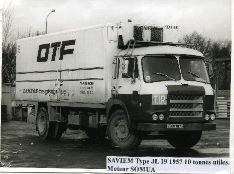13- 1970- Le premier sous température dirigée. Ce SAVIEM JL19 date de 1957. Ce camion est en fait un SOMUA dont il possède le moteur de même marque rebaptisé SAVIEM depuis la fusion de ce constructeur avec LATIL et RENAULT en 1955. Racheté d’occasion aux Laiteries Parisiennes. Sa caisse d’origine isolée avec glace hydrique a été remplacée par une autre, fabriquée par SICAL à Lorient. Le groupe est un ZHENDRE avec moteur thermique à pistons rotatifs NSU. Le véhicule est peint aux couleurs de l’OTF. Un GIE formé entre les Bretons Louis Monnier d’Auray, Freddy Verschuren de Lorient, Transports Mélédo Frères, et Danzas Denrées. Ce GIE possèdera aussi des porteurs-remorqueurs 1929 Mercédès. A la dissolution du GIE deux de ces ensembles seront repris par Danzas Denrées et affectés à la ligne Rungis / Novara (I) / Rungis. Danzas Italie possédant en effet un important centre de groupage dans cette ville à proximité des principaux producteurs de charcuterie et fromages.