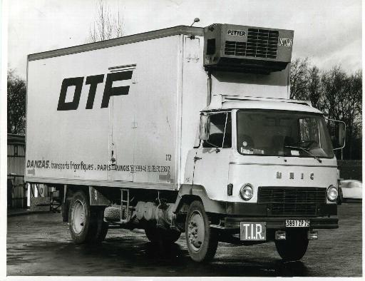 15- Le constructeur de Puteaux est devenu le fournisseur de Danzas Denrées. Ce P8 de 1972 équipé d’un groupe Petter, aux couleurs de l’OTF portant le numéro de parc 112 assure des tournées régionales et le cas échéant des allers-retours France / Grande Bretagne.