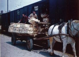 A l’époque le transport à longue distance est assuré à plus de 90 % par le fer. Pour acheminer leurs produits, les expéditeurs disposent de plusieurs régimes proposés par la S.N.C.F. Le R.O.(régime ordinaire), ou le R.A. (régime accéléré). Ce dernier permettant par exemple d’assurer la relation Provence / Halles de Paris en une nuit. Départ à 16 heures et mise à disposition à Paris-Bercy le même jour à minuit. C’est en effet dans cette gare parisienne qu’arriveront toutes les productions de fruits et légumes en provenance du midi et d’Algérie arrivées par le port de Marseille. Les wagons utilisés sont alors les classiques wagons en bois des compagnies ferroviaires. L’été pour ventiler un petit peu les chargements on se contentera d’abaisser les volets latéraux. Les Isothermes ou Réfrigérants sont en principe réservés aux exportations ou aux denrées fragiles comme le poisson. Compte tenu de leurs faibles nombres autant dire que l’été on se les arrache.