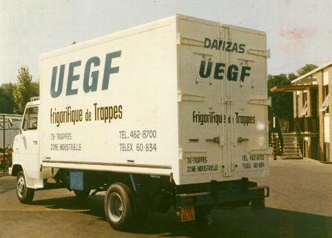 13- La CEGF s’appelle désormais UEGF (Union des Entrepôts et Gares Frigorifiques). Pour sa distribution à Trappes elle a demandé à DANZAS de lui louer ce petit camion HENSCHEL 3 tonnes utiles. La carrosserie réalisée par TUAL et GOURMELEN à Trédion (56) est munie d’un groupe PETTER et est agrée en classe C. Nous sommes en 1974.