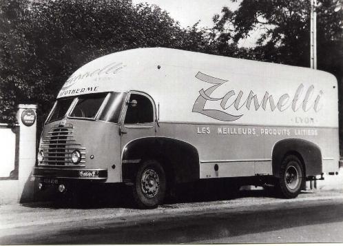 5- Ce joli fourgon intégral isotherme sur châssis SOMUA JL17 ou 19 a été carrossé par COTTARD à Bourg en Bresse. Immatriculé dans le Rhône au début des années 50 il transporte les produits laitiers de l’entreprise ZANELLY de Lyon. Là encore on se contente d’une carrosserie isotherme. SOMUA était une filiale du puissant groupe industriel SCHNEIDER. Installée à Saint-Ouen (93), la firme avait la réputation de véhicules fiables, rapides et puissants. SOMUA avec LATIL et RENAULT intègreront la nouvelle SAVIEM crée par le constructeur de Billancourt le 23 décembre 1955.