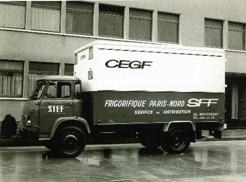 12- Ce SAVIEM SM8 carrossé par CHEREAU à Avranches se contente d’une carrosserie isotherme. La CEGF (Compagnie des Entrepôts et Gares Frigorifiques), filiale de la puissante STEF pour assurer sa distribution en région parisienne a prévu l’emplacement d’un groupe frigorifique mais se réfère à la réglementation qui ne l’exige pas encore.